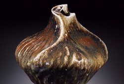 釉質的美感,林瑞華發現,不止可以透過釉藥或落灰在器表的熔融來達成,高溫柴燒也可以激發土胎的質變,將胎骨中的礦質成分燒熔出來,形成一種自然釉化的效果。林瑞華將這種自然釉稱為「釉母」,它是坯體由內而外的質變所形成,是陶土在熊熊烈焰中被還原為初始的礦石狀態。隨著土礦成分的不同,柴燒溫度的高低、時間的長短,「釉母」可以如玉似金,或冰裂或流動,時素樸時斑斕, 變化的可能似乎沒有止盡。