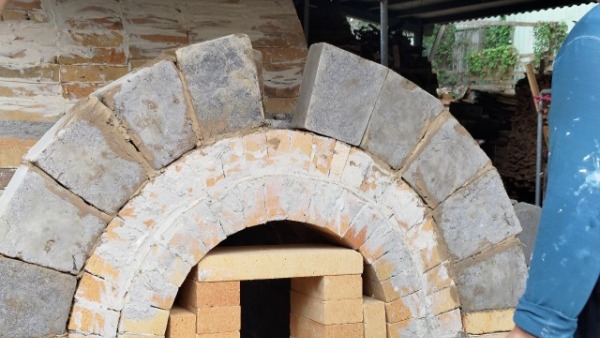 當砌築至最後一塊磚時,中央位置放入關鍵的土磚,此磚必須略大於最後的空間,以木板頂住最後一塊磚上方,用木槌慢慢敲打進去,完成後窯拱就「拱」起來了,撐起整個結構。