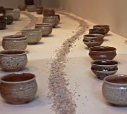 創作時,我嘗試結合斯洛維尼亞的傳統器型與近二年發展出來的技巧,以及台灣式的實用器型。地圖上的等高線一直很吸引我;地圖代表地球,同時地圖讓人想到旅行,那些線條引發了我的創作靈感,並成為這次展覽的主題—Lines of Earth地球行。
