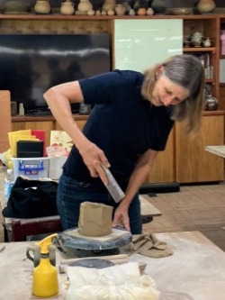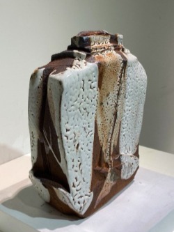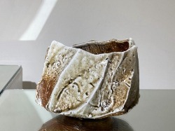接著將作品挖空以形成內部空間,再用含鐵的泥漿裝飾,施以志野風格的釉藥,並在柴窯中以15至18小時燒成。