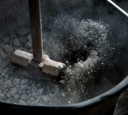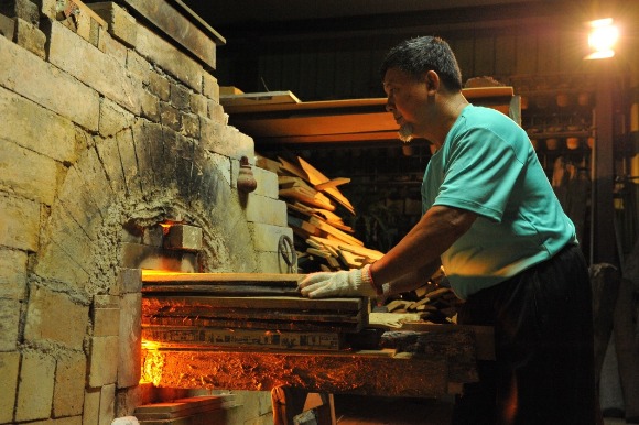 燒成時,完全使用廢木料來燒製,自然柴燒超過1400℃的「高溫」,能將不上釉藥的純土礦燒出古玉、金絲等自然礦物色澤,少去冶煉釉藥的製程,以自然工法創造出視覺藝術的新饗宴。用漂流木與製材廠的邊柴,燒製時不但沒有黑煙,更可以用極少量的木材燒製出極高的溫度。