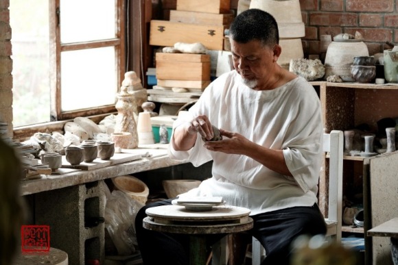 竹南蛇窯第二代窯主「林瑞華」在高溫柴燒領域專研近30年,他的作品皆使用手工煉製的原礦土,自己敲、篩、泡、揉,保留土礦天然的稀有物質,不但少去工業化精練土礦的過程,更發現這樣手製的原礦土,能帶給作品更多的生命與可能。
