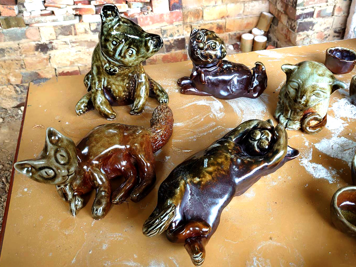 圖:8月份小貓咪捏陶課的學員作品,皆為柴燒。