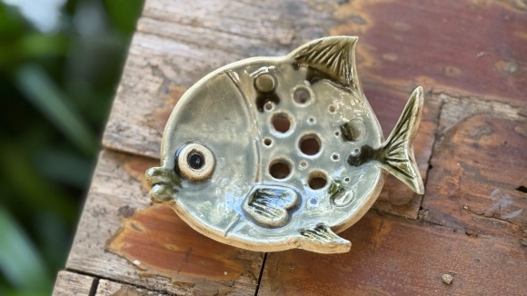 內容|共2件(造型淺盤×1、小魚皂盤×1),電窯燒製