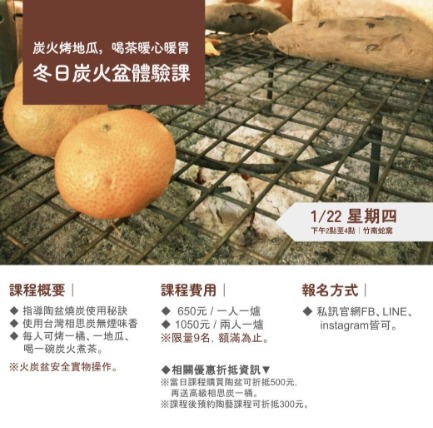 課程時間|1/22星期四下午2點至4點竹南蛇窯