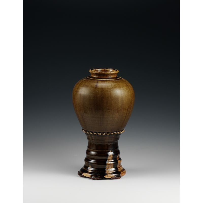 本件作品以兩件拉坯作品組合,再施以泥灰釉。在柴窯裸燒高溫燒到1380℃,並持溫十小時以上。產生古青瓷綠釉效果,但因為用現代的裸露燒法,故意不用匣缽隔離,窯壁垂滴許多窯汗,在以前視為瑕疵,但現代陶藝追求這種意外驚喜之美,產生的變化自然、獨一無二。